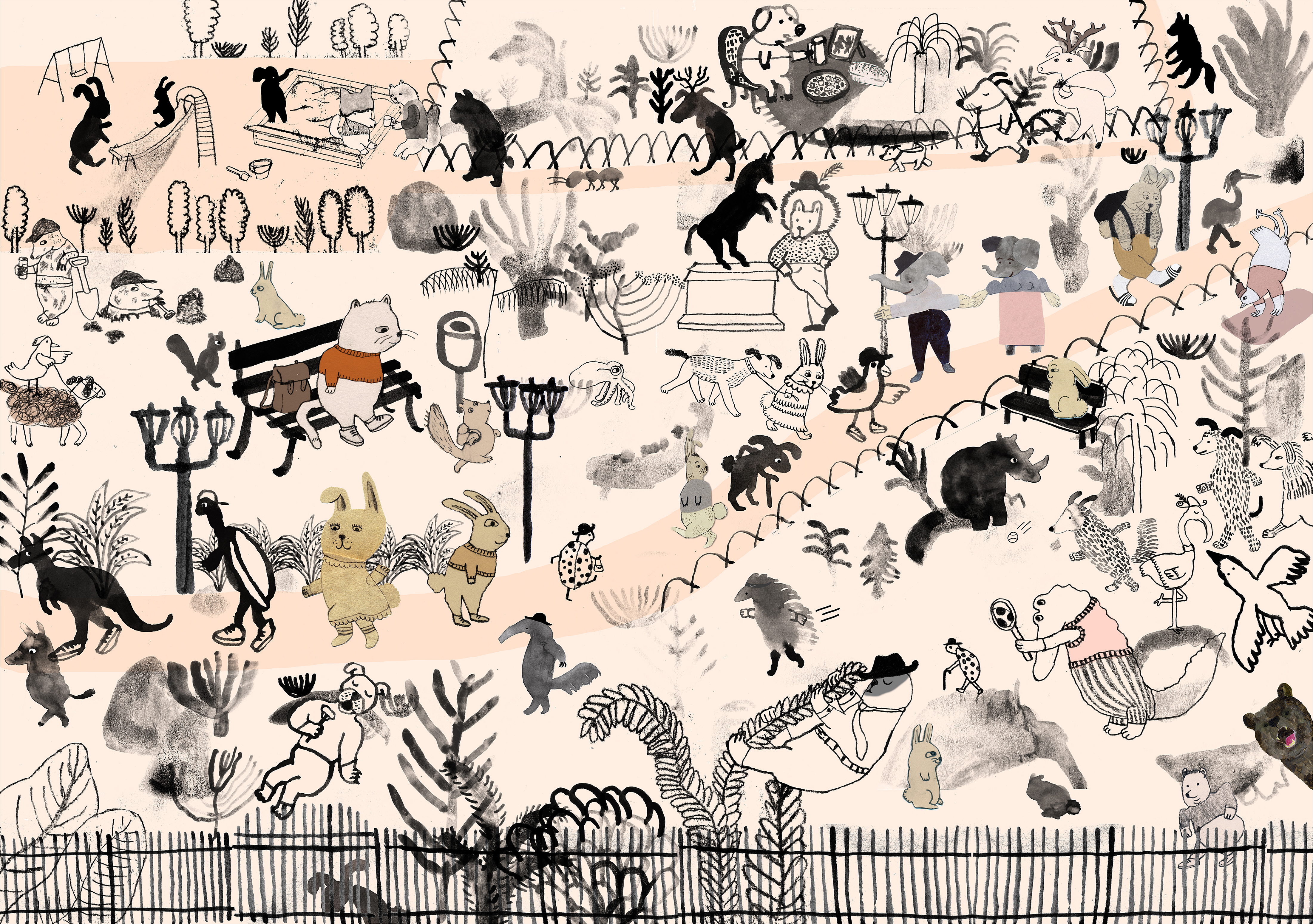 Two prints depicting a day in the city of Oslo, and in one of its parks.